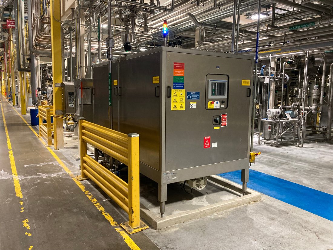 At the heart of the cleaning system are two NIV500 Ice Pigging systems. The Ice Pigging process is performed up to six times a day per system to maintain the hygiene standards required for the production of high-quality paint. This is a fully automated system with both machines maintaining an inventory of ice at exactly the right consistency for line cleaning. The factory system simply calls for an Ice Pig to be delivered as part of the combined cleaning approach when each batch of mixed product is transferred to the next stage of manufacture. The process is run without any need for operator intervention.